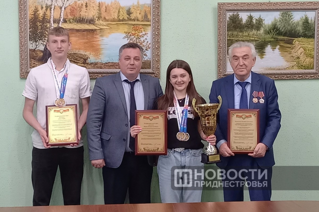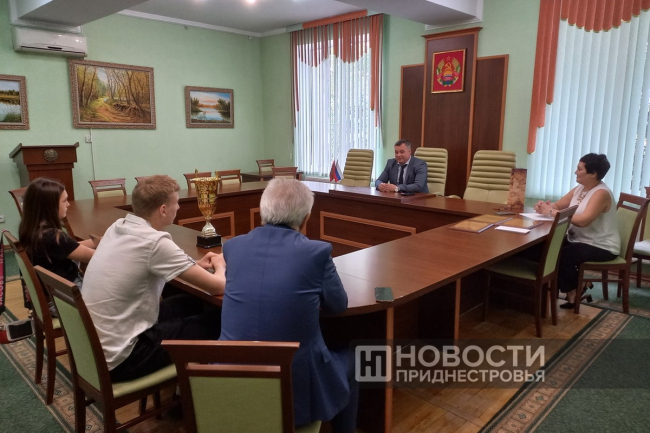 Дубоссары, 14 июня. /Новости Приднестровья/. В дубоссарской госадминистрации сегодня состоялась встреча с теннисистами, которые одержали победу на Всемирных играх юных соотечественников в Москве. Глава госадминистрации Руслан Чабан вручил воспитанникам и руководителю Дубоссарской школы настольного тенниса поздравительные адреса и подарки.