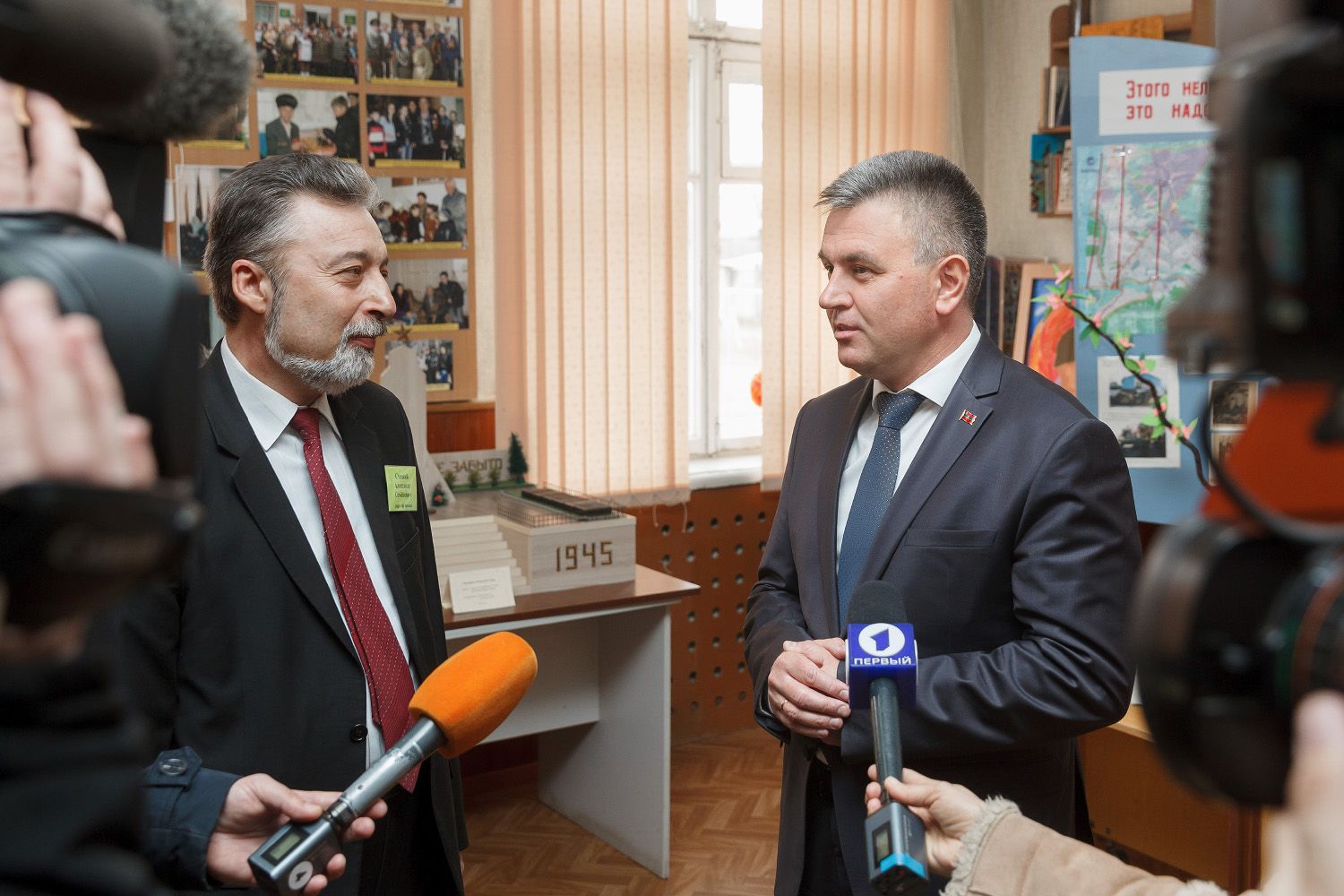 Президент осмотрел классные комнаты, пообщался с первоклашками и выпускниками. Спрашивал о планах на перспективу, нацеливая учеников старших классов планировать будущее без отрыва от родины. Глава государства посетил школьный музей, обратив внимание на значительное количество экспонатов, посвященных Великой Отечественной войне. Президенту рассказали, что патриотизму и сохранению истории в школе уделяют огромное внимание. За каждым классом закреплен ветеран Великой Отечественной войны либо труженик тыла. Ребята ухаживают за Мемориалом Воинской Славы и могилами погибших защитников. О значимости бережного отношения к истории говорится и в записи, оставленной президентом в книге почетных гостей. Вадим Красносельский подчеркнул, что у тех, кто не помнит и не чтит прошлого, нет будущего, и выразил благодарность за похвальное отношение к истории.