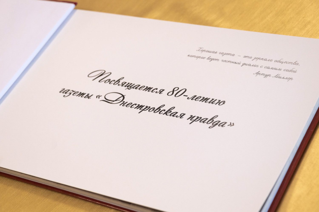 Вадим Красносельский подчеркнул, что судьба старейшего периодического издания неразрывно связана с историей приднестровского края. Глава государства отметил, что тираспольская газета на протяжении восьми десятилетий честно и ярко отражает жизнь города и республики, все ее перипетии, в полной мере соответствуя современному названию издания – «Днестровская правда».