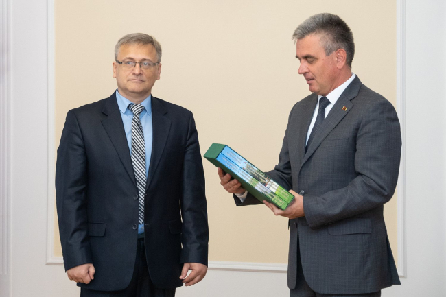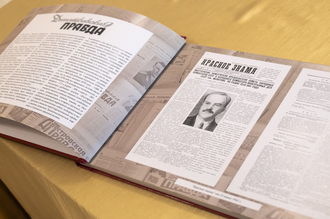 Участники юбилейно-дискуссионной встречи обменялись памятными подарками. Главе государства вручили альбом архивных фотографий и иных материалов, иллюстрирующих историю создания, становления и развития газеты. Виновникам торжества о сегодняшнем мероприятии будет напоминать полученное от руководителя страны обновленное издание «Золотая коллекция лучших мест Приднестровья».