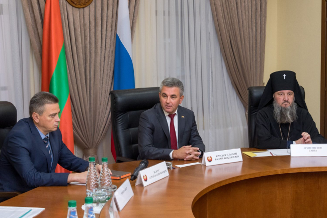 Президент отметил, что всегда открыт для диалога. Он подчеркнул значимость церкви в жизни общества, призвал представителей различных конфессий к консолидации и взаимодействию на принципах добрососедства. Глава государства также пригласил собеседников принять участие в очень важном мероприятии, намеченном на 30 октября - в День памяти жертв политических репрессий на территории Тираспольской крепости пройдёт траурная церемония перезахоронения останков расстрелянных в 30-е годы прошлого столетия граждан. Собеседники поддержали Вадима Красносельского во мнении, что поминальная молитва должна быть в этот день общей.