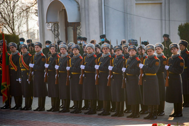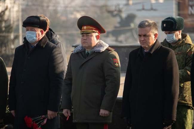 Состоялась церемония возложения цветов и венков к Вечному огню и к памятникам и могилам защитников. По завершении церемонии Вадим Красносельский поздравил солдат, офицеров и всех, кто стоит на страже мира и в любой момент готов защитить приднестровский народ, напомнив о военных корнях истории Тирасполя и неразрывности уз приднестровского воинства с российским миротворчеством, говорится в сообщении пресс-службы главы государства.