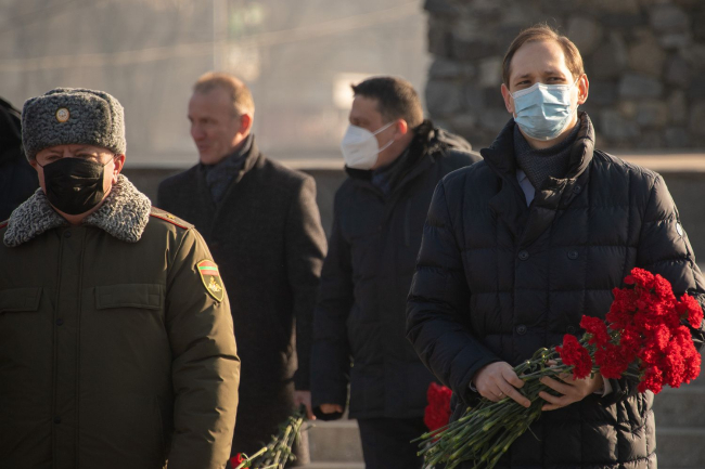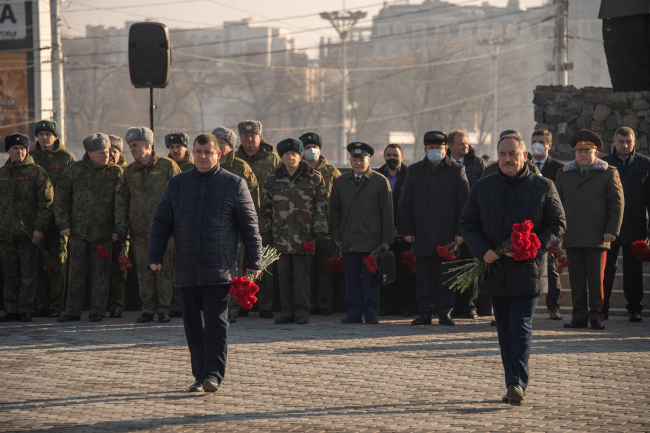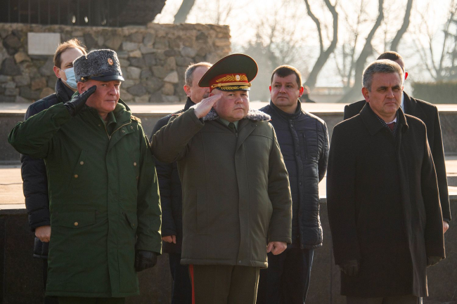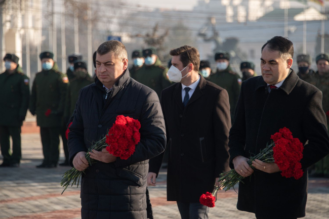 Тирасполь, 23 февраля. /Новости Приднестровья/. Глава государства, руководство Правительства ПМР, Верховного Совета, министерств и ведомств силового блока, а также Миротворческих сил прибыли на столичный Мемориал Славы, чтобы почтить память героев, отдавших жизни, защищая Отечество.