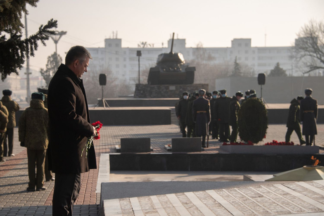 Глава государства возложил цветы к Вечному огню и могилам защитников