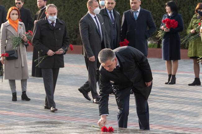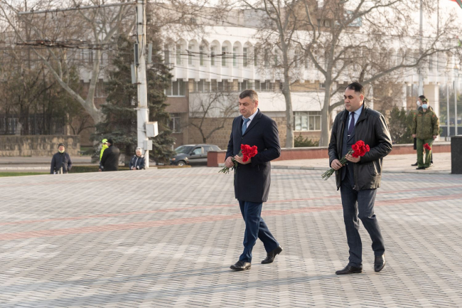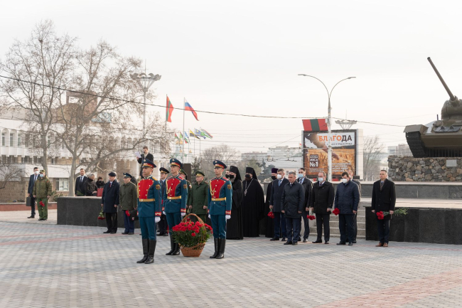 По случаю памятной даты Президент ПМР Вадим Красносельский возложил цветы к Вечному огню и могилам защитников Отечества на столичном Мемориале Славы. В церемонии возложения участие приняли ветераны ВОВ, представители руководящего состава Администрации Президента, Правительства ПМР и Верховного Совета, а также министерства силового блока, ОГРВ в Приднестровье, госадминистрация и горсовет Тирасполя, священнослужители.