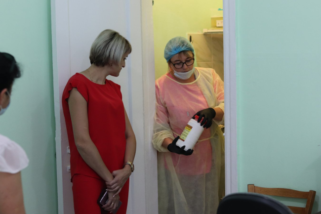 Кристина Албул проверила рабочие места стоматологов и зубного техника, поинтересовалась наличием средств индивидуальной защиты и дезинфектантов, а также тем, как они используются на деле.