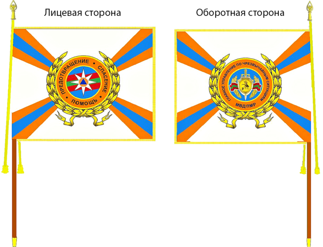 Как указано в положении, знамя ГУпЧС «является символом чести, доблести и славы, служит напоминанием каждому сотруднику о героических традициях органов и подразделений Министерства внутренних дел ПМР, о священном долге преданности Приднестровской Молдавской Республике, верности её Конституции и законам, уважении и защите личности, соблюдении прав и свобод граждан».