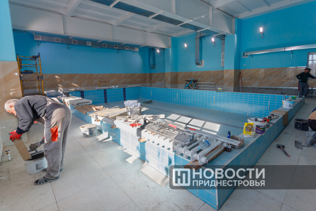 В большом помещении уже очистили стены от старой плитки, прогрунтовали их и сейчас наносят штукатурку. Уже готовы ниши под будущую вентиляцию. Пока бассейн ремонтируют, спортсмены тренируются в бендерском бассейне «Дельфин», а также спорткомплексе «Шериф», который предоставил скидку для учащихся школы плавания. В тираспольском бассейне отмечают, что неудобство временное. Возможно, получится открыть малый бассейн, пока в большом идет ремонт.