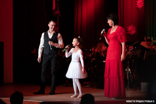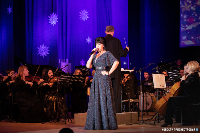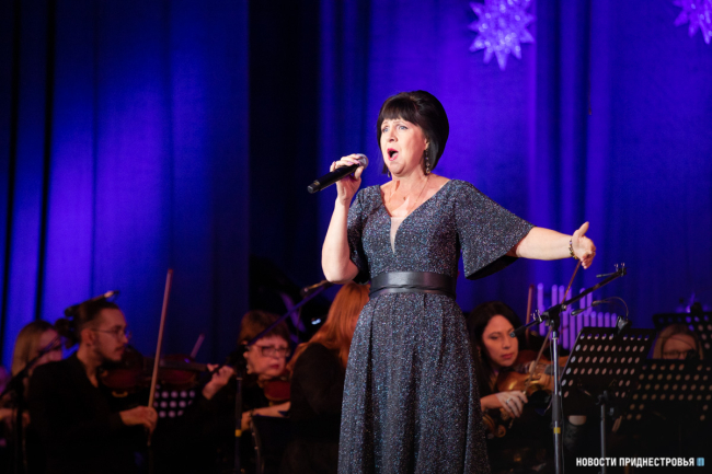Открыл концертную программу вальс Иоганна Штрауса, куплеты Адель из оперетты «Летучая мышь» исполнила народная артистка ПМР Вера Лапенкова.