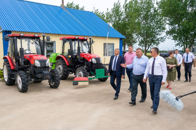 Глава государства обратил внимание на современный машинотракторный парк. Здесь в основном новая техника для эффективного и щадящего плоды сбора яблок, опрыскивания и культивации.