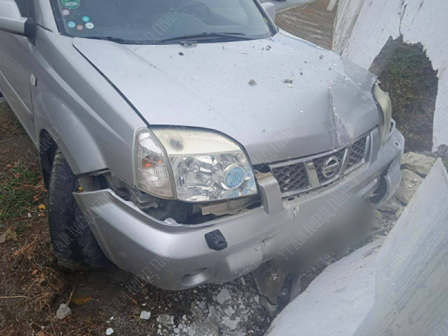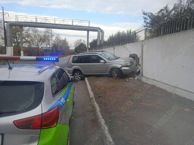 Иномарка на мокрой дороге врезалась в бетонный забор