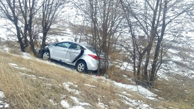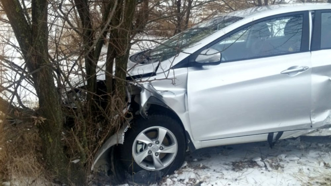 Иномарка на скользкой дороге съехала в кювет и врезалась в дерево