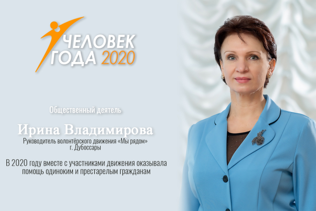 После введения весной 2020 года в республике чрезвычайного положения из-за пандемии коронавируса во всех городах и районах республики было создано волонтёрское движение «Мы рядом!». В Дубоссарах его возглавила Ирина Владимирова.