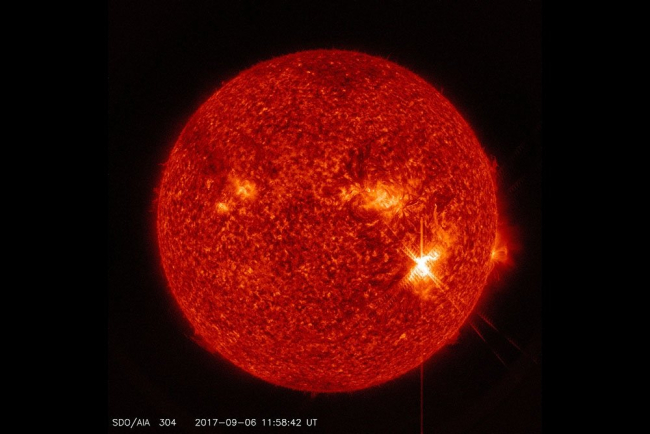 В результате слияния двух крупнейших групп солнечных пятен 6 сентября произошла самая мощная вспышка за последние 12 лет, которая принадлежит к классу X. Явлению был присвоен балл 9,3, что делает вспышку одним из пяти мощнейших взрывов на Солнце за всю историю наблюдений.