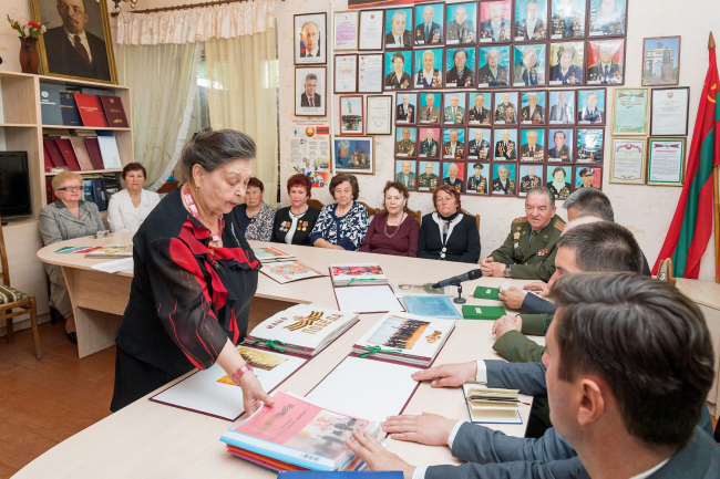 Работа по созданию музея Боевой Славы была начата в 1999 году. Сейчас, кроме большого количества фотоматериалов и других экспонатов, главной ценностью музейного фонда являются достоверные и подробные сведения о тираспольских ветеранах Великой Отечественной войны, а именно их рукописи. Президент рекомендовал сохранить их копии и в электронном формате.