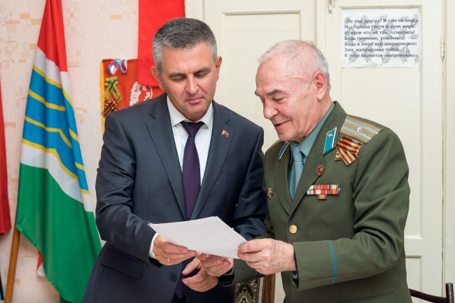 Вадим Красносельский передал тираспольскому Совету ветеранов войны, труда и вооруженных сил сертификат на приобретение бытовой техники и офисной мебели, в обновлении которой нуждается организация. Участники встречи, в свою очередь, пригласили Президента на 20-летие организации, которое состоится в ноябре.