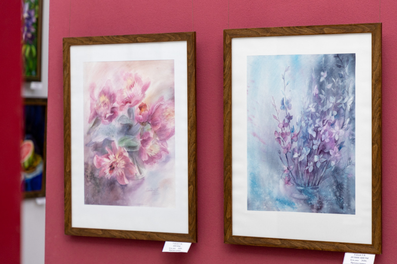 Художница из Рыбницы Татьяна Гайдей привезла на выставку две работы, на которых изображены цветы.