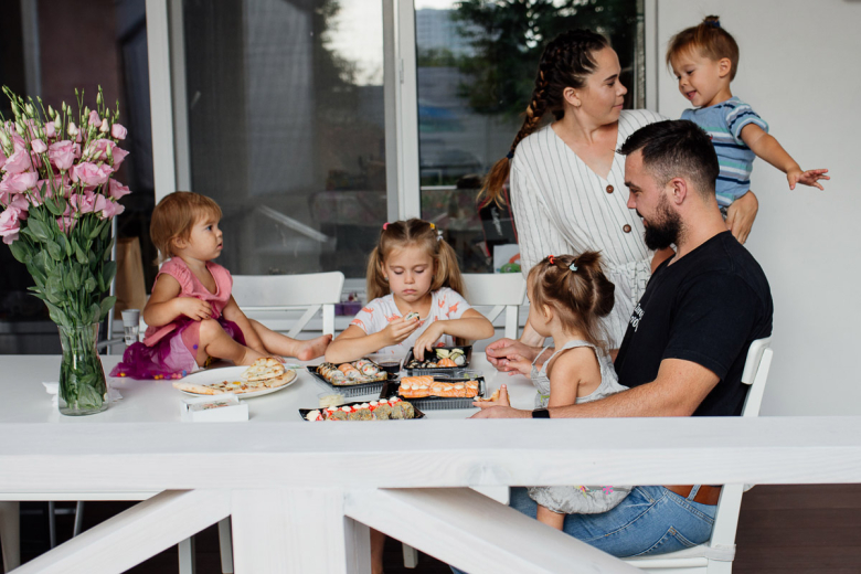 Многодетному отцу удаётся совмещать родительство с работой благодаря любимой жене, которая поддерживает его во всем.