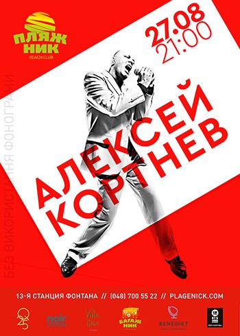 Живой концерт бессменного лидера российской команды «Несчастный случай» Алексея Кортнева традиционно для этого лета пройдет в Одесском ПляжНике.