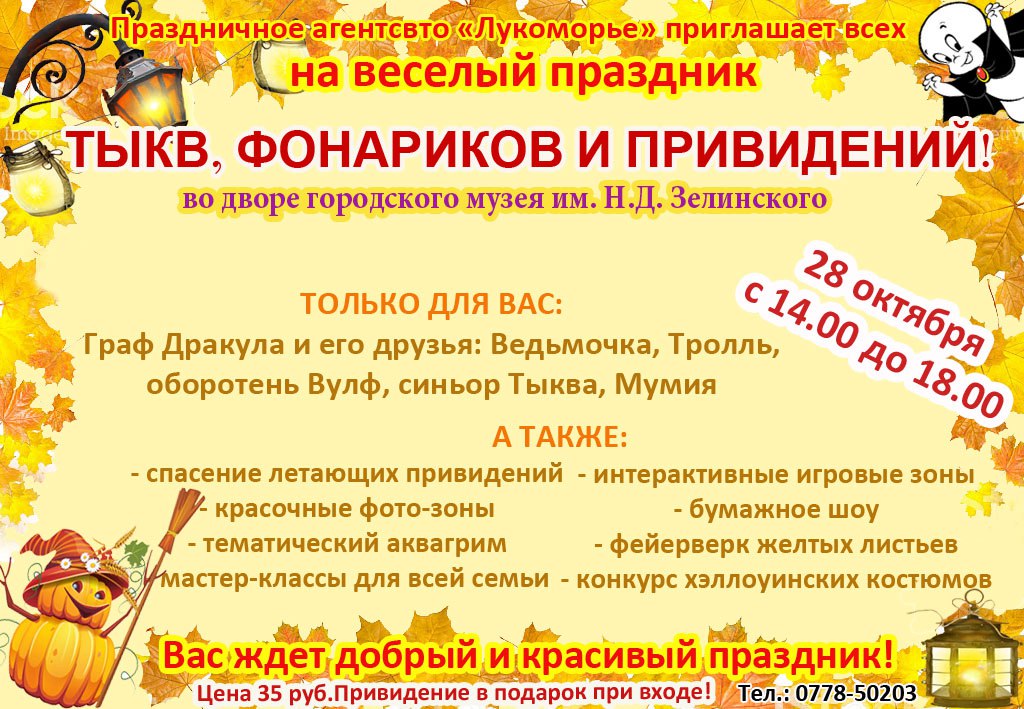 28 октября в 14:00 во дворе городского музея им. Д. Зелинского состоится праздник, посвященный Хэллоуину.