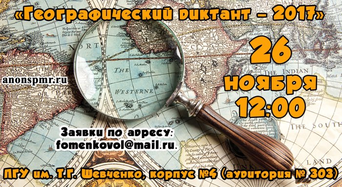 В воскресенье в 4 корпусе в 303 аудитории Приднестровского госуниверситета пройдет масштабная акция «Географический диктант – 2017».