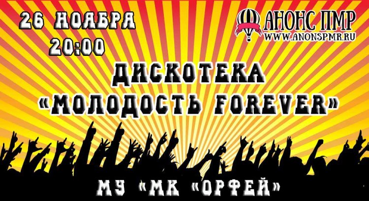 Дискотека под одноименным названием в 22:00 будет организована в молодежном клубе «Орфей». Танцевальное мероприятие проходит в рамках Недели молодежи и студентов.
