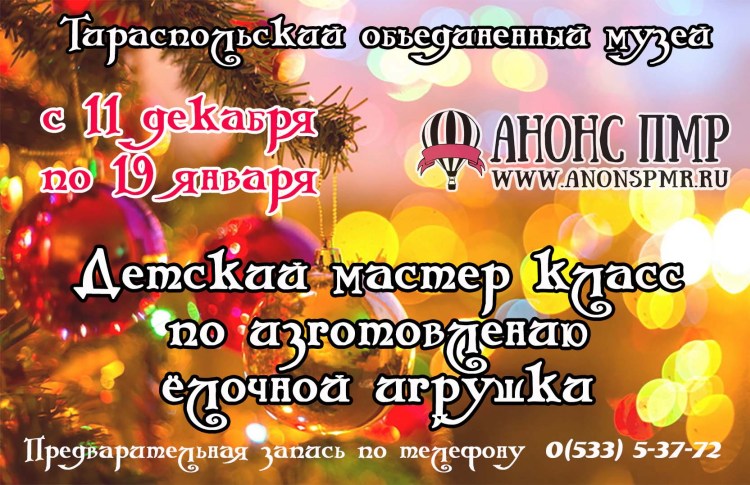 Юным тираспольчанам сотрудники музея расскажут о традициях празднования Нового года, загадают загадки, поиграют в подвижные игры и проведут веселые конкурсы, а также смастерят праздничную поделку.