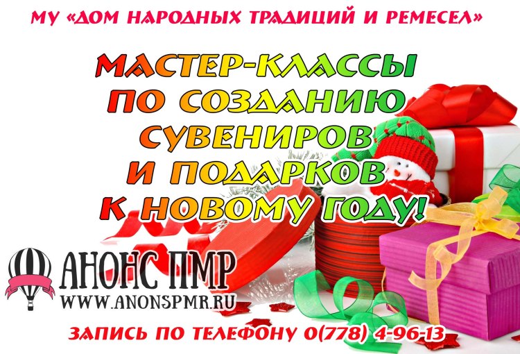 В 15:00 в тираспольском Доме народных традиций и ремесел состоится мастер-класс по созданию сувениров и подарков к Новому году! В этот день малыши будут создавать сладкий подарок – новогодний будильник из конфет.