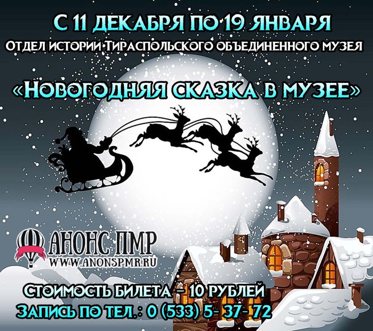 «Новогодняя сказка в музее». В Тираспольском объединенном музее в субботу и воскресенье проведут интерактив с детьми дошкольного и младшего школьного возраста.