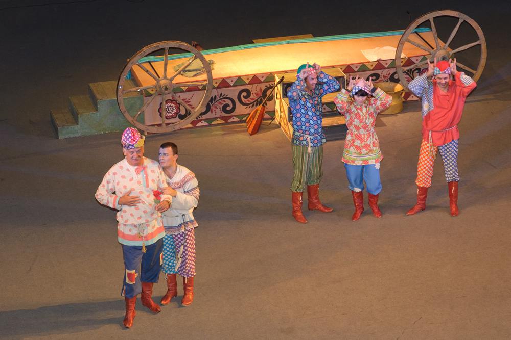 Основным его сюжетом стала «Сказка о купце Кузьме Остолопе и его работнике Балде». Яркая, остроумная постановка задумана как балаганное действо странствующих скоморохов.