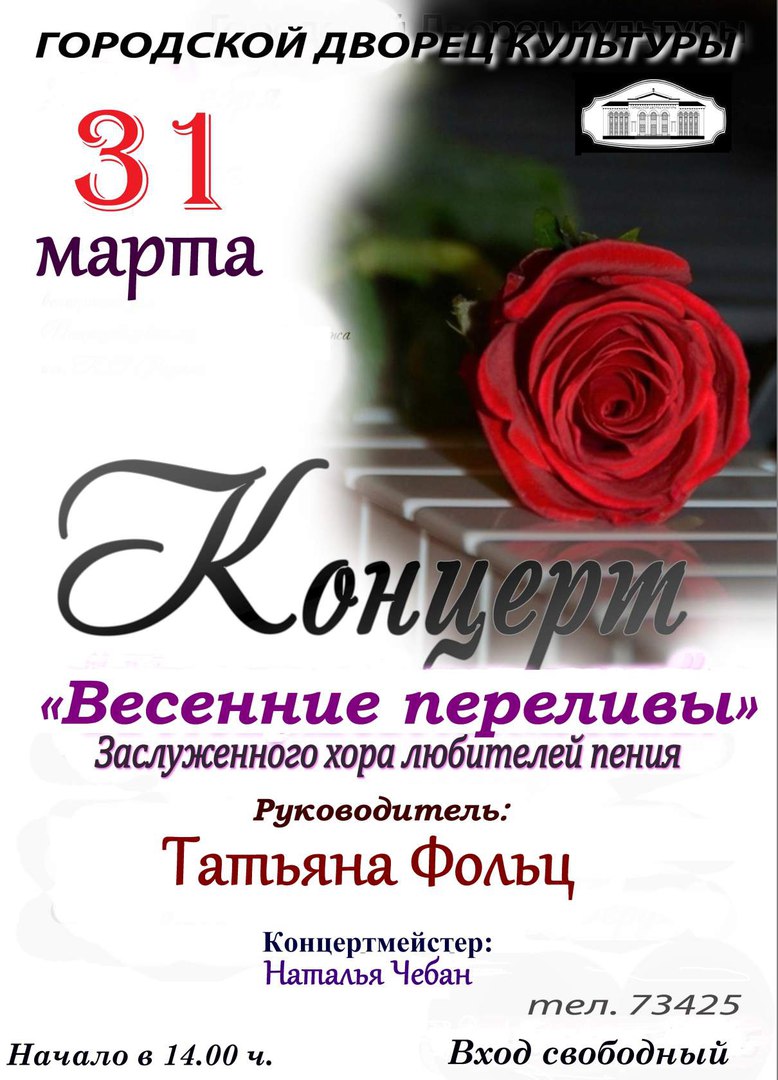 Городской дворец культуры приглашает всех жителей и гостей столицы на концерт Заслуженного хора любителей пения под названием «Весенние переливы».