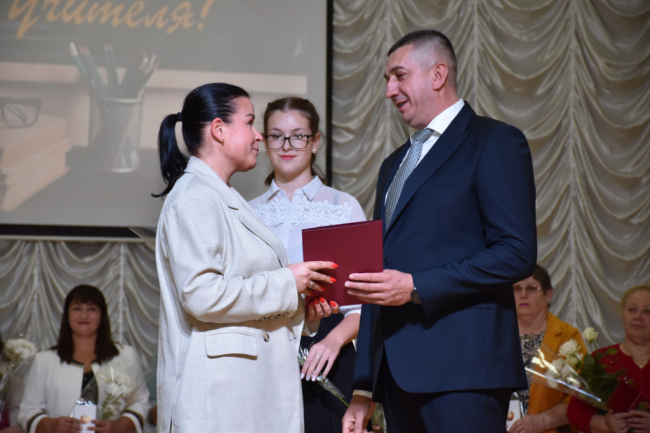 Слова поздравлений и пожеланий работникам образования адресовали глава Каменского района Сергей Сокирка, председатель Совета народных депутатов района и города Олег Бурлака.
