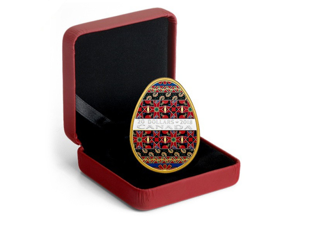 Цветную позолоченную монету в форме украинской писанки – расписного пасхального яйца – выпустит Королевский монетный двор Канады. Это будет уже третья писанка в коллекции монетного двора.