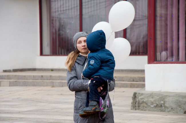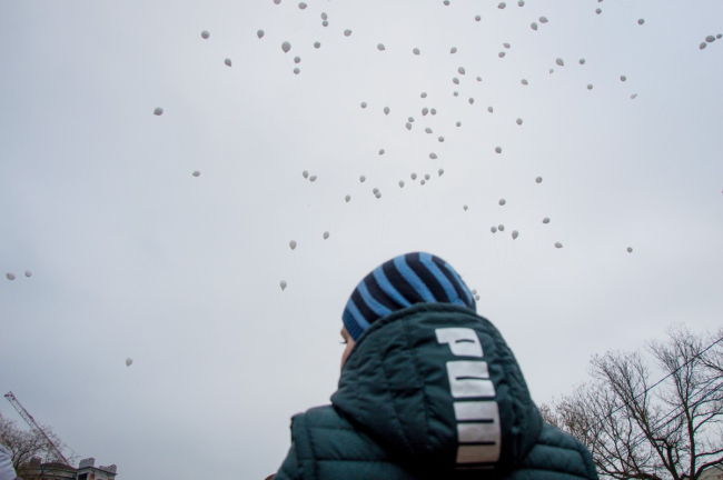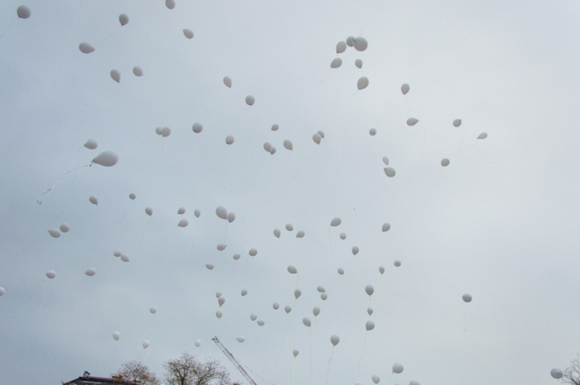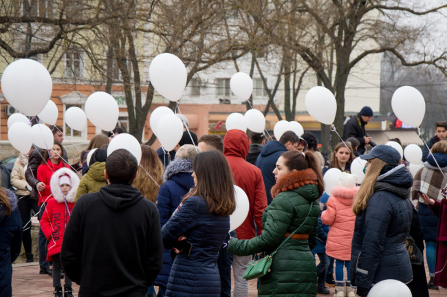 В Тирасполе прошла акция памяти погибших при пожаре в Кемерово. Участники запустили в небо белые шары