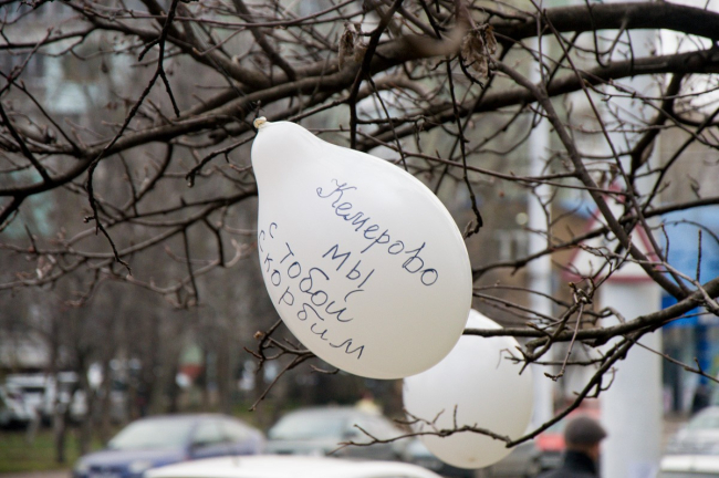 На акцию пришли около 100 человек. После 18:00, когда основная часть людей уже запустила шары, стали подходить ещё. Некоторые крепили шары с надписью «Кемерово, мы с тобой скорбим» на деревья.