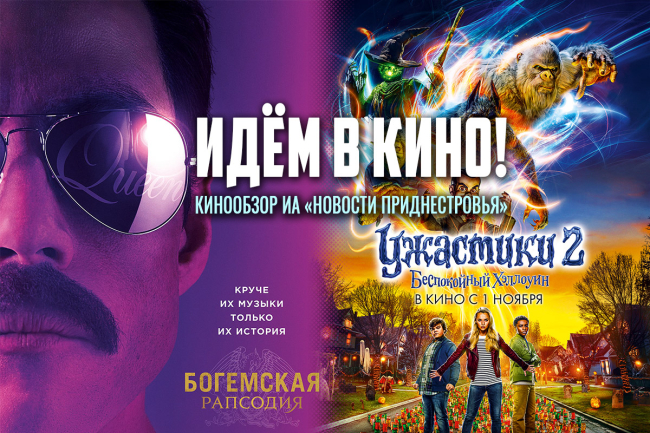 Сегодня на широкие экраны выходят две премьеры: музыкальная драма «Богемская рапсодия» и комедия «Ужастики 2: Беспокойный Хэллоуин». Эти картины можно посмотреть как на территории Российской Федерации, так и в кинотеатрах Тирасполя, Бендер и Рыбницы.