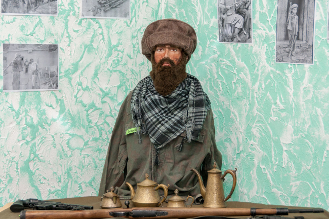 «Здесь можно увидеть форму солдат СССР, воевавших в разные годы на территории Афганистана (камуфляжи, горки, головные уборы). Также есть некоторые предметы солдатского быта: котелок, фляжка, полевой бинокль. Среди оружия – ручная граната, автомат АК-74, штык-нож. Также есть карта и фото 20 героев Советского Союза», - отмечает коллекционер.