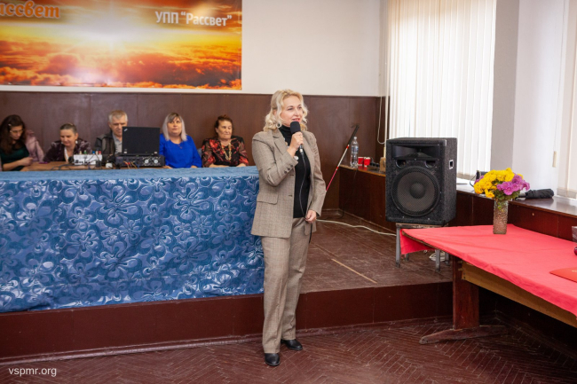 Юбилей у предприятия был летом, но отметить его решили сегодня, в преддверии Международного дня слепых людей (отмечается 13 ноября). В актовом зале УПП «Рассвет» собрались ветераны и сотрудники. Их поздравили депутат Верховного Совета Илона Тюряева и депутаты Тираспольского горсовета Елена Соболева и Игорь Единак. Предприятие относится к их избирательным округам.