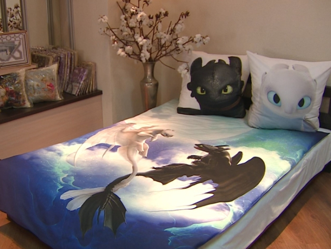 Еще одна новинка – комплекты, которые светятся в темноте (рисунок на ткани выполнен краской на основе люминесцентного пигмента).