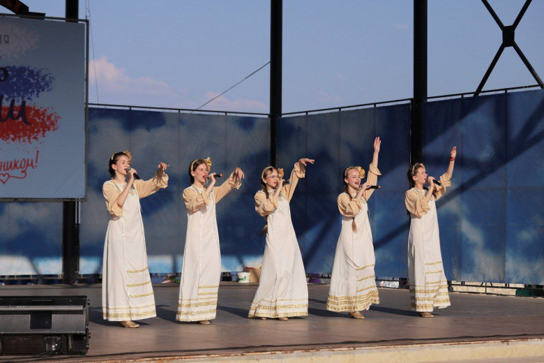 В Рыбнице у фонтанного комплекса выступил самодеятельный коллектив вокального ансамбля «Чаровницы». А молодые рыбничане организовали акцию «Мы – вместе!» и раздавали всем ленточки в цветах флага РФ.
