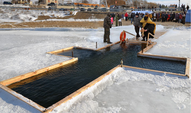 Предварительно водолазы проверят дно реки. Неподалёку от купели разместят палатки для переодевания и обогрева купающихся