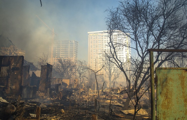 Крупный пожар в Ростове-на-Дону повредил около 100 жилых построек