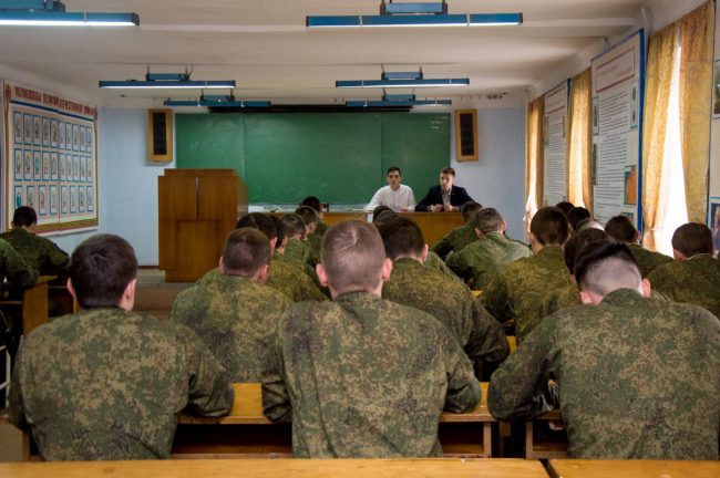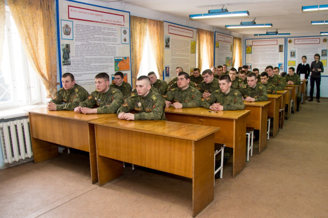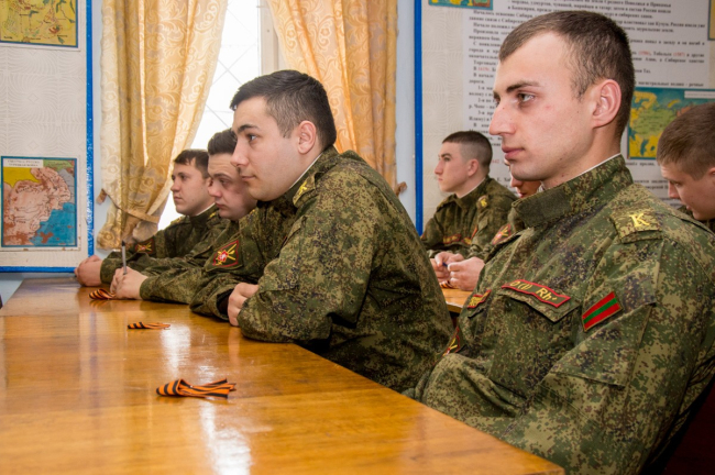 В стенах Военного института Министерства обороны ПМР была организована встреча общественных активистов и курсантов учебного заведения. Открылось мероприятие с вручения георгиевских лент, затем в ходе беседы участниками обсуждались главные принципы патриотического воспитания. Курсанты также прошли тест, определяющий уровень патриотизма.