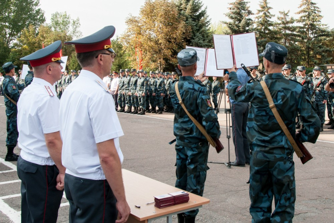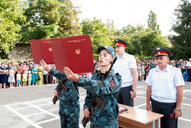 Тирасполь, 29 августа. /ИА «Новости Приднестровья"/. Сегодня 88 курсантов первого курса Тираспольского юридического института (ТЮИ) им. Кутузова Министерства внутренних дел торжественно принесли присягу на верность Родине. Такие церемонии в вузе по традиции приурочивают к празднованию Дня Республики.