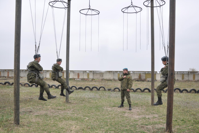 На воздушно-десантном городке курсантов ознакомили с порядком действий при совершении учебно-тренировочных прыжков: отделение от самолета, действия в воздухе и при приземлении.