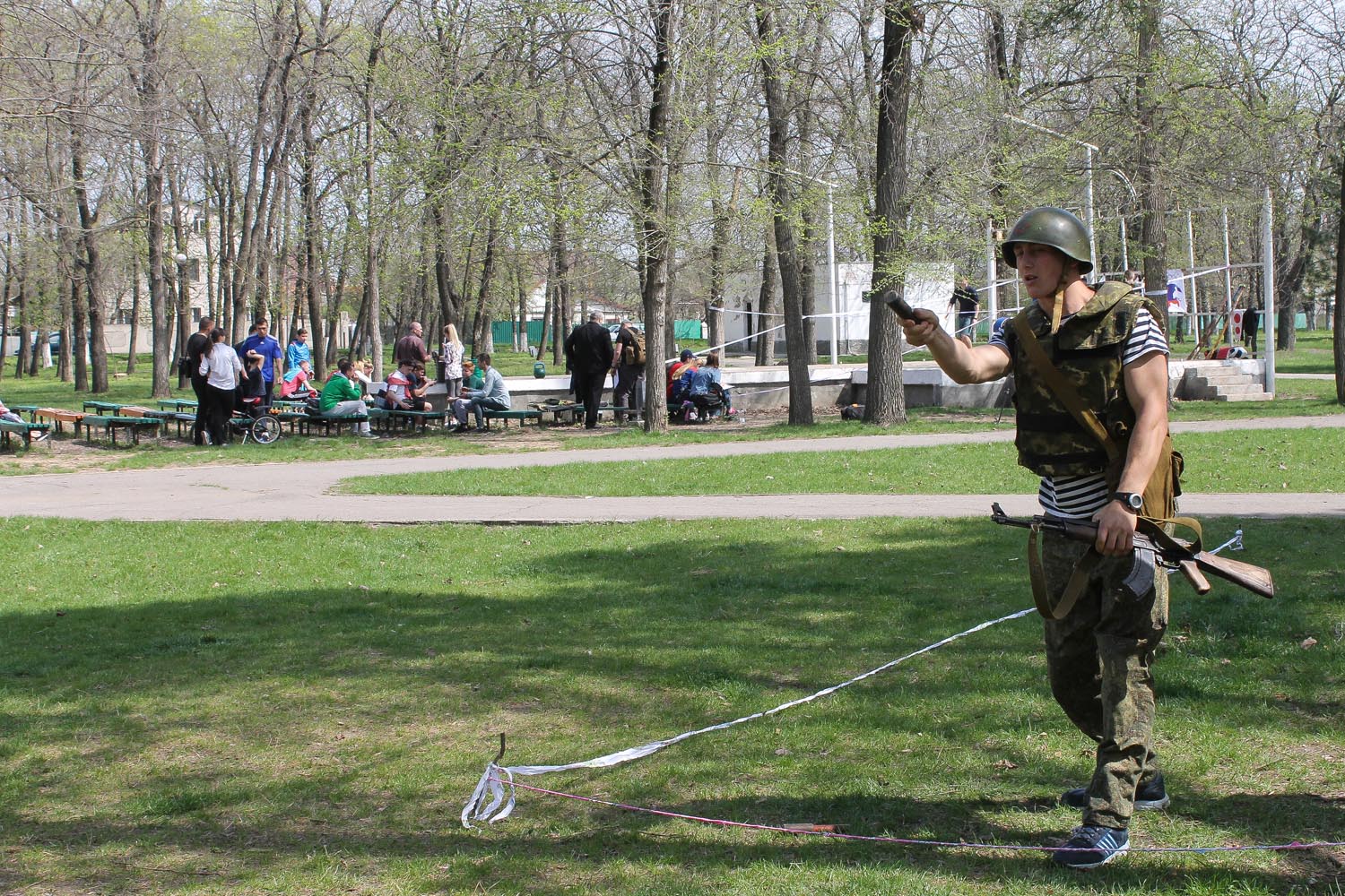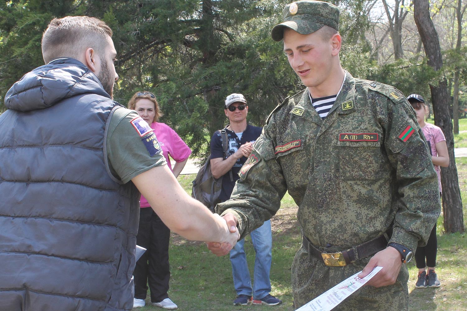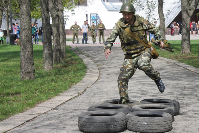Тирасполь, 14 апреля. /Новости Приднестровья/. Курсанты Военного института Министерства обороны ПМР имени генерал-лейтенанта А.И. Лебедя приняли участие в спортивно-патриотическом празднике молодежи «Готов трудиться и защищать». Его организаторами выступили патриотическое молодежное республиканское движение «Молодая республика» и Молодежный парламент ПМР. Мероприятие приурочили к 74-й годовщине освобождения Тирасполя от немецко-румынских захватчиков. Соревнования проходили на спортивных площадках столичного парка культуры и отдыха «Победа».
