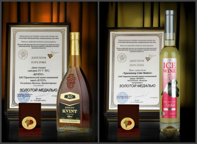 Тирасполь, 25 ноября. /ИА «Новости Приднестровья"/. Тираспольский винно-коньячный завод «KVINT» награждён двумя золотыми медалями на Международном профессиональном конкурсе вин, который прошел в Москве.
