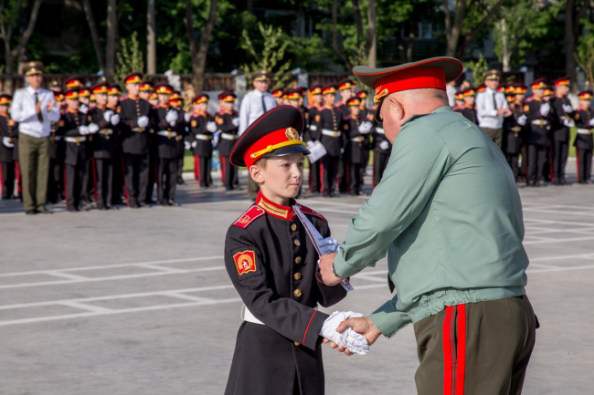 Тирасполь, 25 мая. /Новости Приднестровья/. Приднестровские школьники уходят на летние каникулы. Торжественные линейки прошли по всей республике, прозвенел последний звонок и в Суворовском училище. Первый в его истории, он, конечно же, отличался от привычных школьных церемоний. Вместо черно-белых нарядов и праздничных бантов – сплошь торжественно подтянутые юноши. Ещё год назад они были такими же, как все, а теперь – уже настоящие суворовцы.