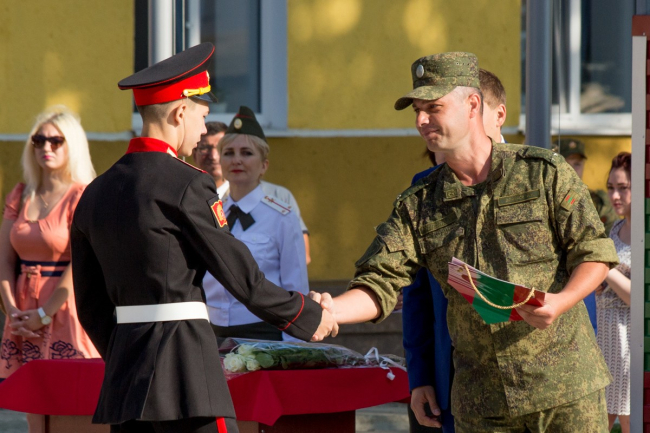 «Ровно год назад порядка 200 ребят сделали свой выбор и вступили в ряды суворовцев, будущих защитников Отечества. За это время вы добились многого, стали участниками и победителями различных олимпиад, соревнований, конкурсов городского, республиканского и международного характера. В этом году вы впервые участвовали в параде Победы, и это честь для каждого из вас», – приветствовал ребят министр обороны Олег Обручков.