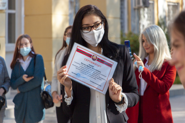 Тирасполь, 15 октября. /Новости Приднестровья/. Активным студентам Приднестровского госуниверситета им. Т. Г. Шевченко вручили специальные сертификаты на получение стипендии Президента ПМР. Всего 25 студентов и аспирантов. Торжественная церемония вручения прошла перед главным корпусом ПГУ, сообщается на сайте вуза.
